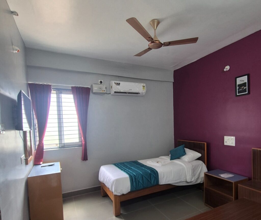 KN Park offers clean, comfortable, and affordable rooms in the heart of Trichy. With 24 years of trusted service, we provide a peaceful stay near G Square — perfect for families, solo travelers, and business guests